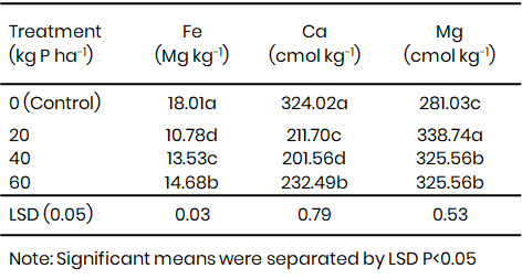 Table 3: Effect of phosphorus concentration on mineral composition analysis of soybean