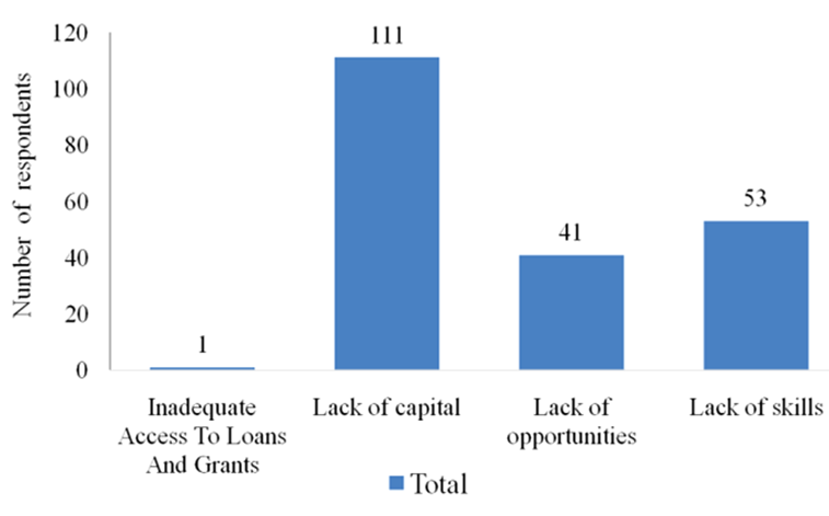 In addition, lack of opportunities was reported by 41 respondents (19.9%), replicating a bigger fundamental problem in the labour market. This discovery suggests that even when youth have the motivation and in some cases the skills, they often find it difficult to access job openings or entrepreneurial paths due to limited formal employment, poor infrastructure, or inadequate support systems. This observation is supported by Olubusoye et al. (2023), who note that structural unemployment, caused by a scarcity of suitable employment options, is a persistent issue affecting Nigerian youth. Remarkably, inadequate access to loans and grants was identified by only 1 respondent (0.5%). This may seem counterintuitive, considering the prominence of financial barriers. However, this finding could specify that many youth are either unaware of such opportunities, perceive them as inaccessible due to complex application procedures, or doubt formal financial institutions. It may also reveal low exposure to formal funding schemes, particularly in rural areas. Badejo et al. (2024) similarly found that many Nigerian youths prefer informal financing options or rely on family networks due to perceived inefficiencies in formal support systems.