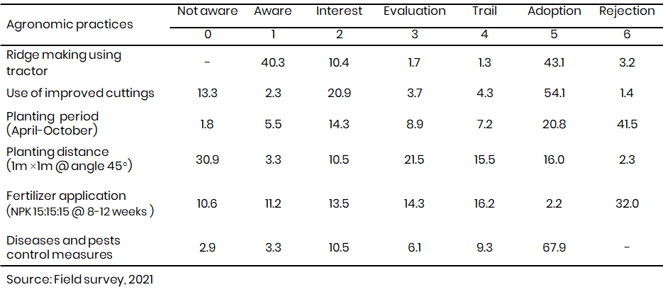 Table 3: Levels of adoption (%) of improved cassava agronomic practices by the farmers