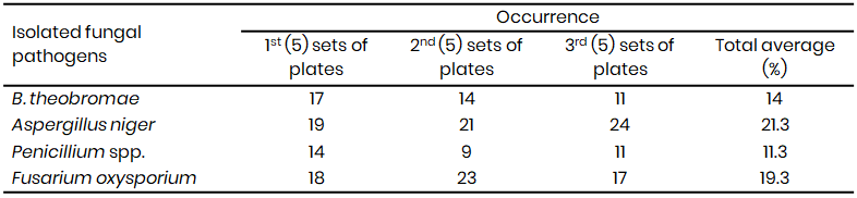 Table 1A: Percentage occurrence of the isolated fungal pathogens from the rotten Xanthosomas agittifolium corms (2021)<