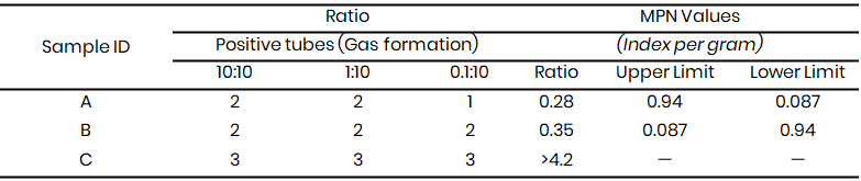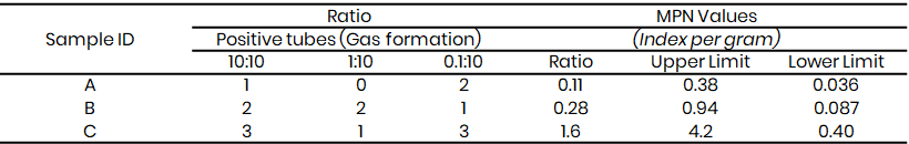 The presumptive test was carried out by inoculating 10 mL, 1 mL and 0.1 mL of the water samples into test tubes containing 10 mL of MacConkey broth with inverted Durham tubes, incubated at 35–37 °C for 24–48 hours. Gas production and color change indicated possible coliform presence (APHA, 2017).